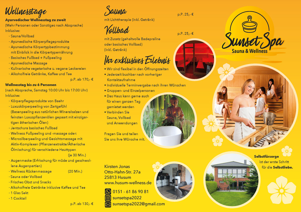 Herzlich willkommen im SunsetSpa, Ihrer Kleingruppensauna in der wunderschönen Stadt Husum.